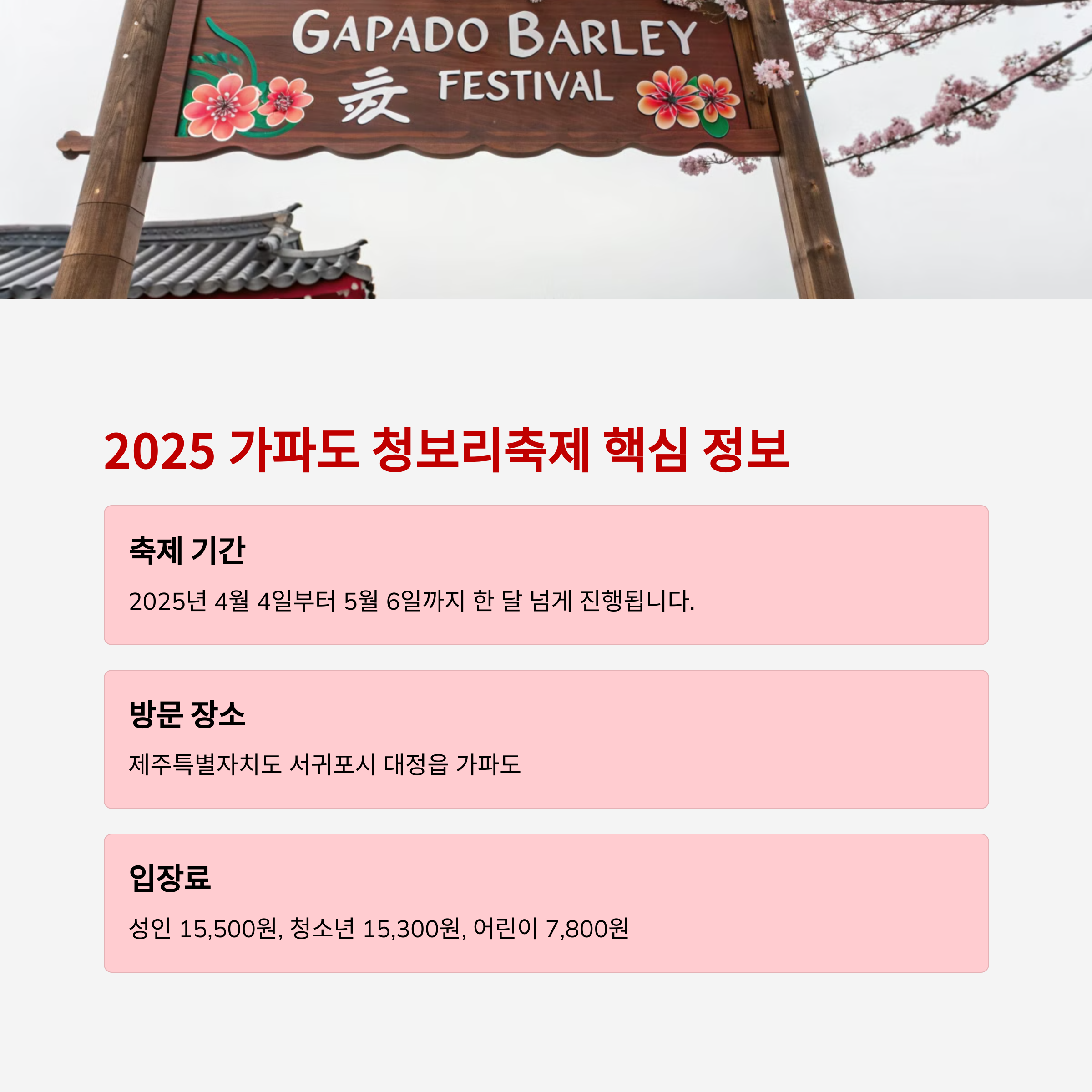 | 2025 청보리축제 시작일 | 4월 4일 |
