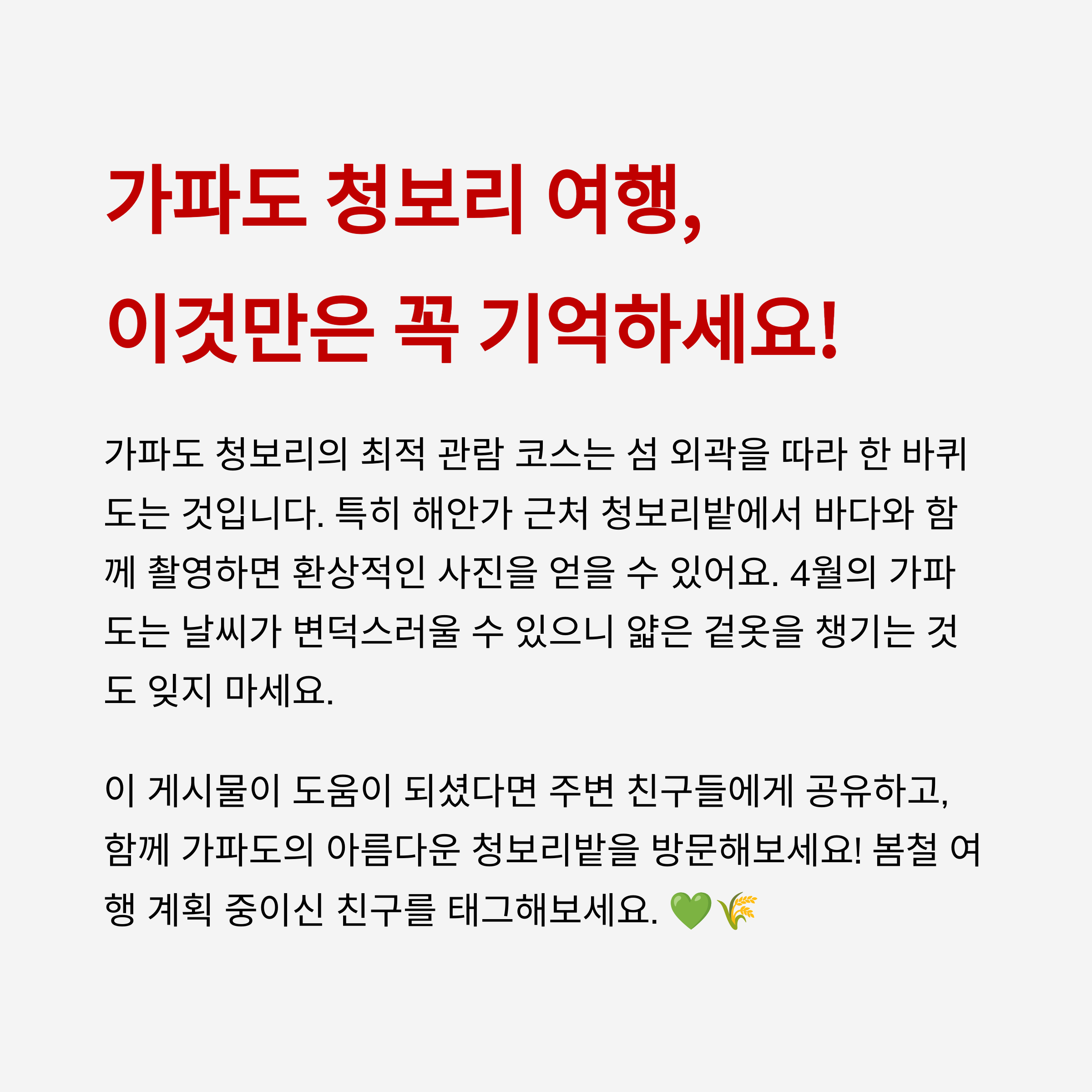 이번 봄, 가파도의 따뜻한 초록 물결 속으로 떠나볼 시간입니다.