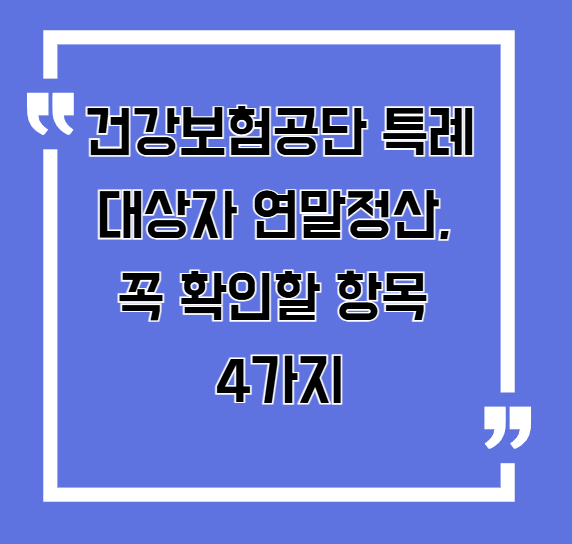 건강보험 특례 대상자는 연말정산 누락 시 예상치 못한 고액 청구를 받을 수 있습니다. 본인의 상황을 정확히 파악하고 반드시 공단에 특례 적용 여부를 확인하세요.