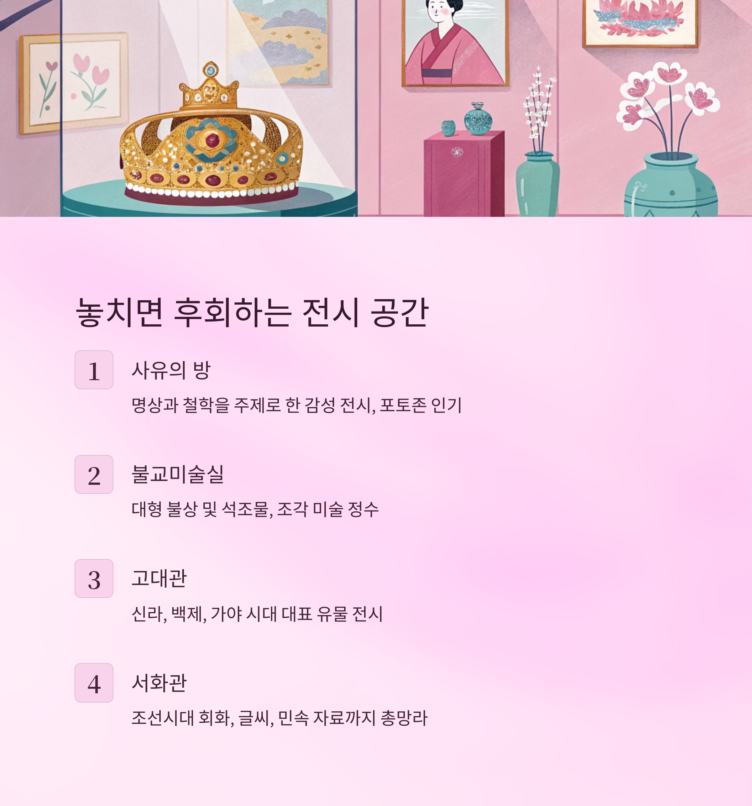 | 서화관 | 조선시대 회화, 글씨, 민속 자료까지 총망라 |