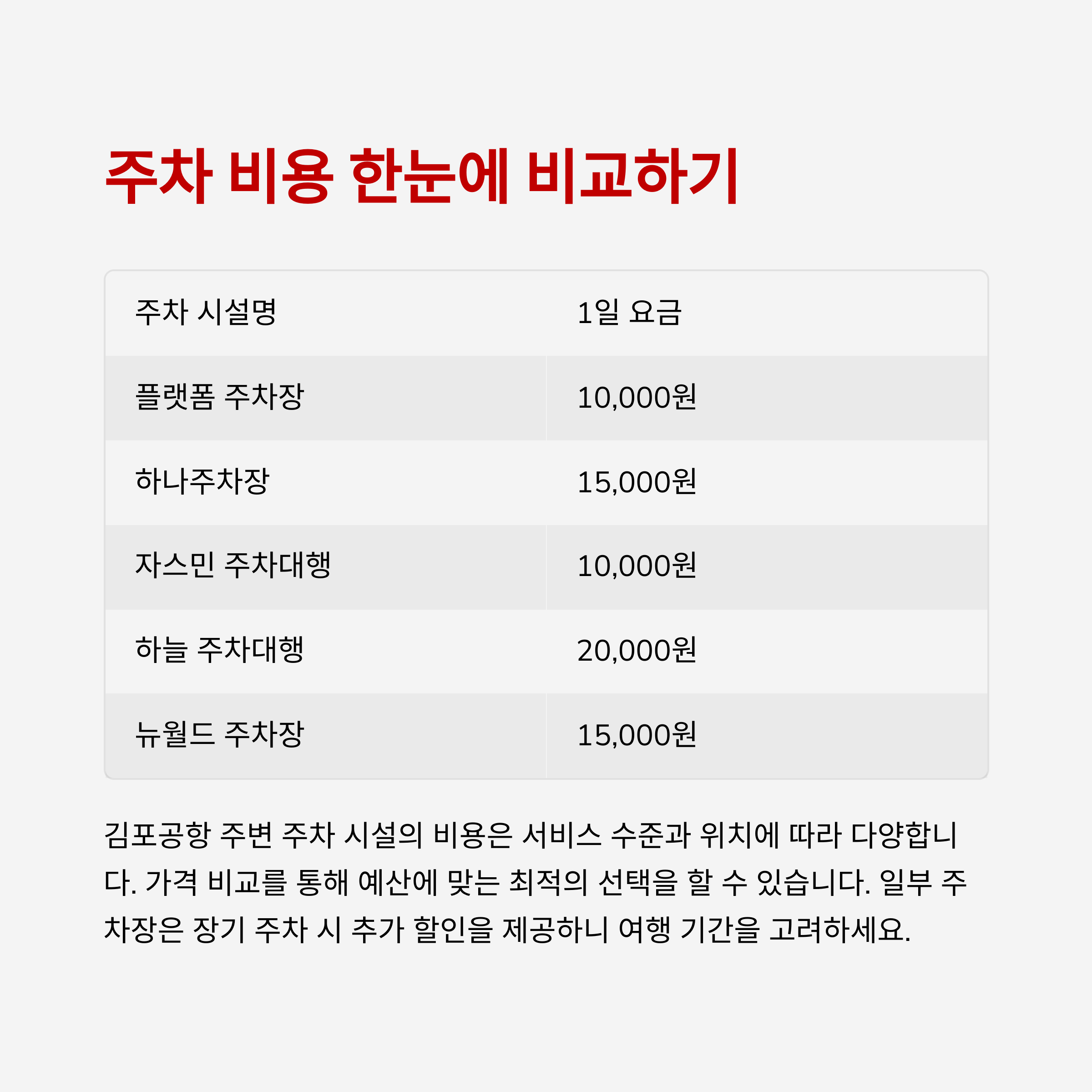 김포공항 주차 서비스 및 요금 비교표