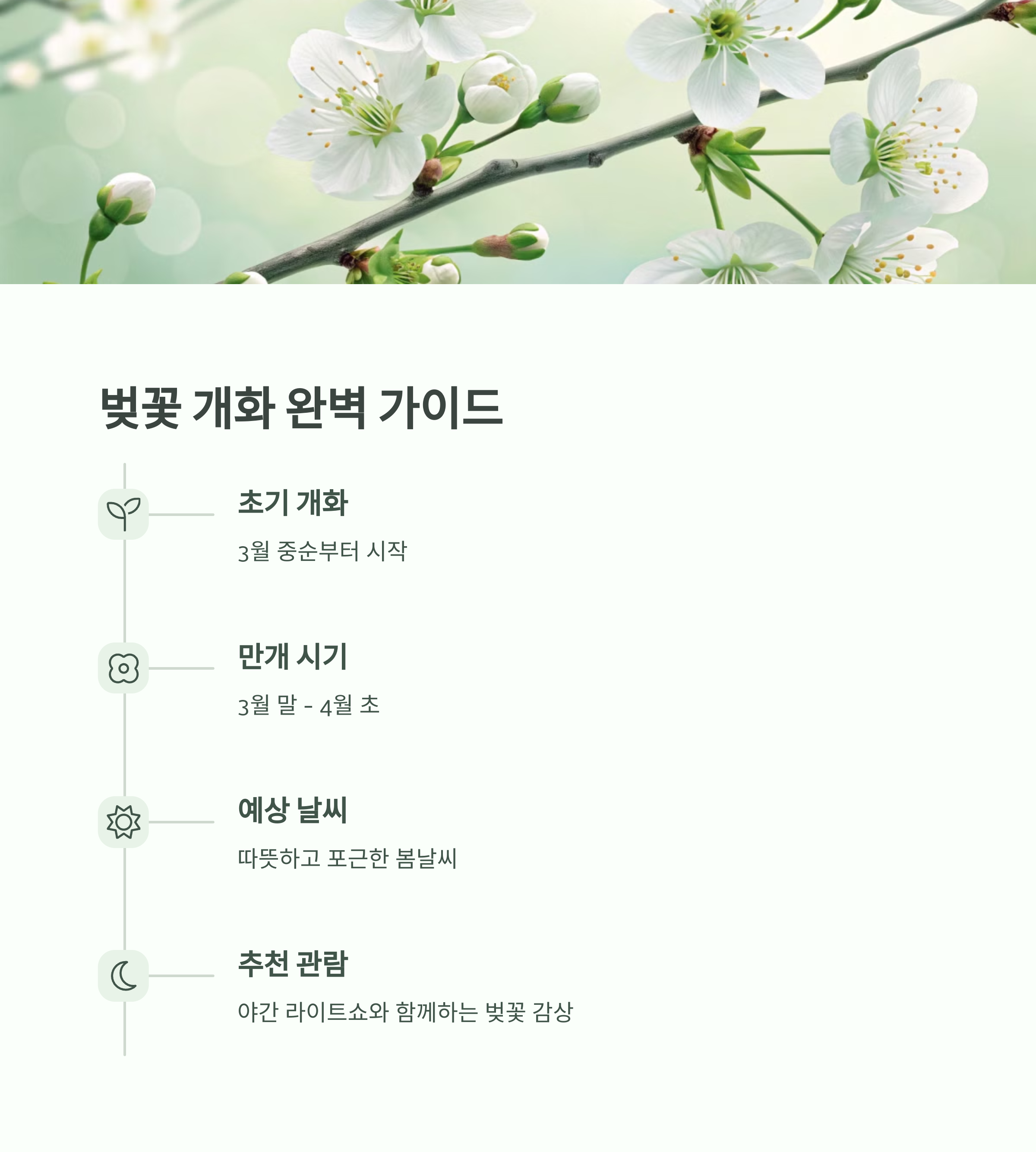 실시간 개화 현황을 SNS로 확인하며 적절한 방문 시기를 계획하신다면 최고의 순간을 만끽할 수 있습니다.