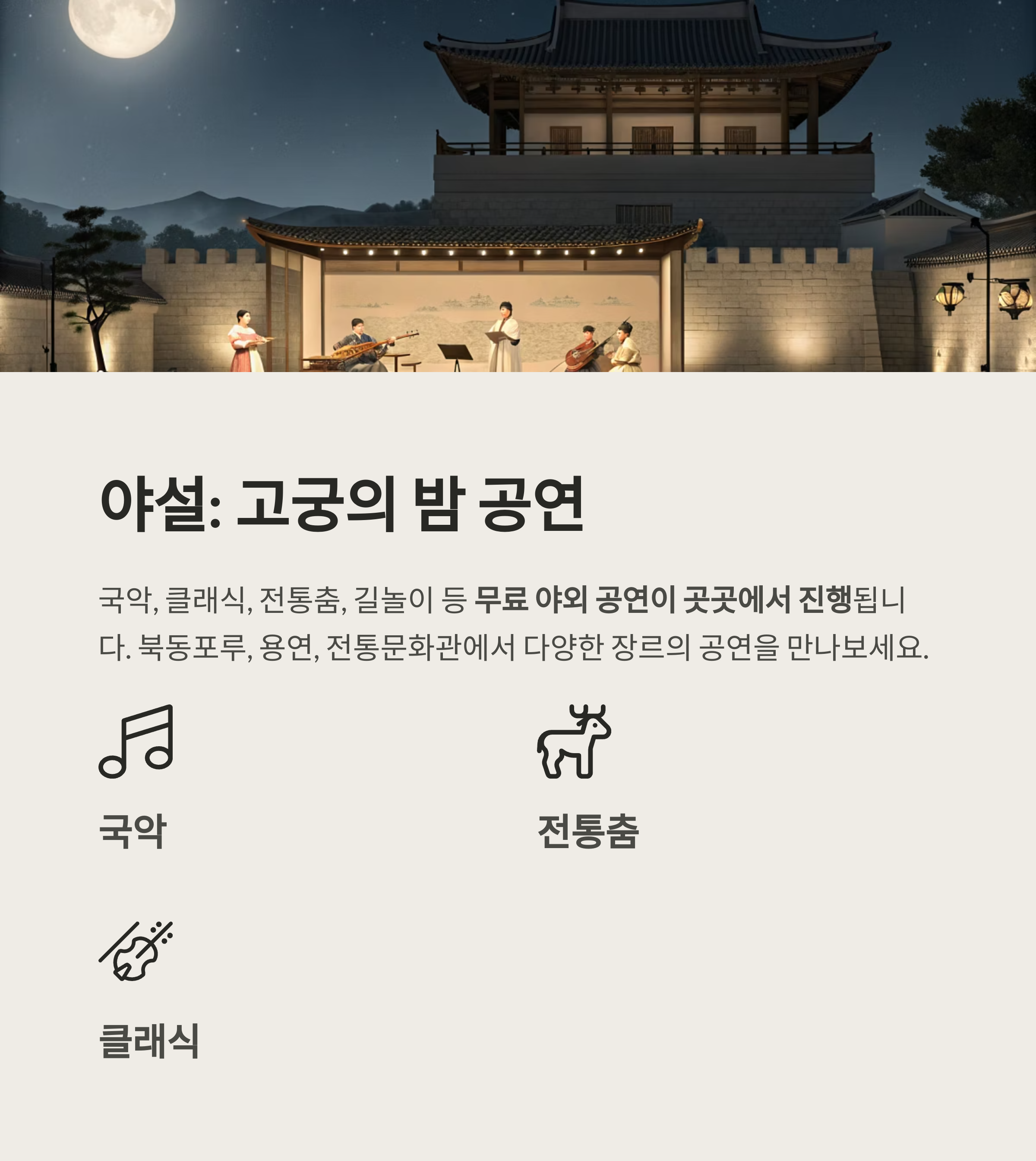 야설: 고궁의 어둠 속 무대 위로 펼쳐지는 공연