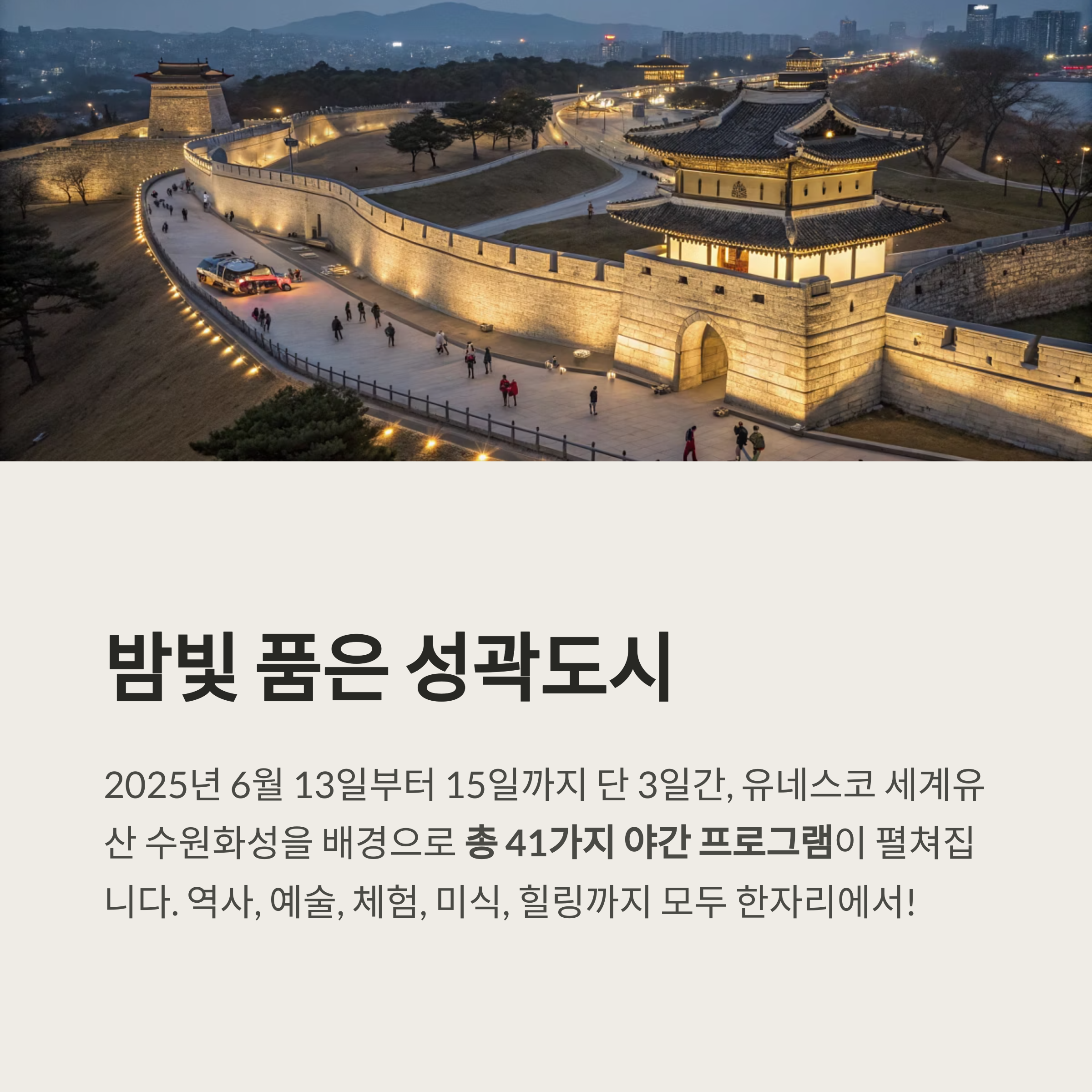 2025년 6월 13일부터 15일까지 단 3일간, 수원의 밤이 특별해집니다.