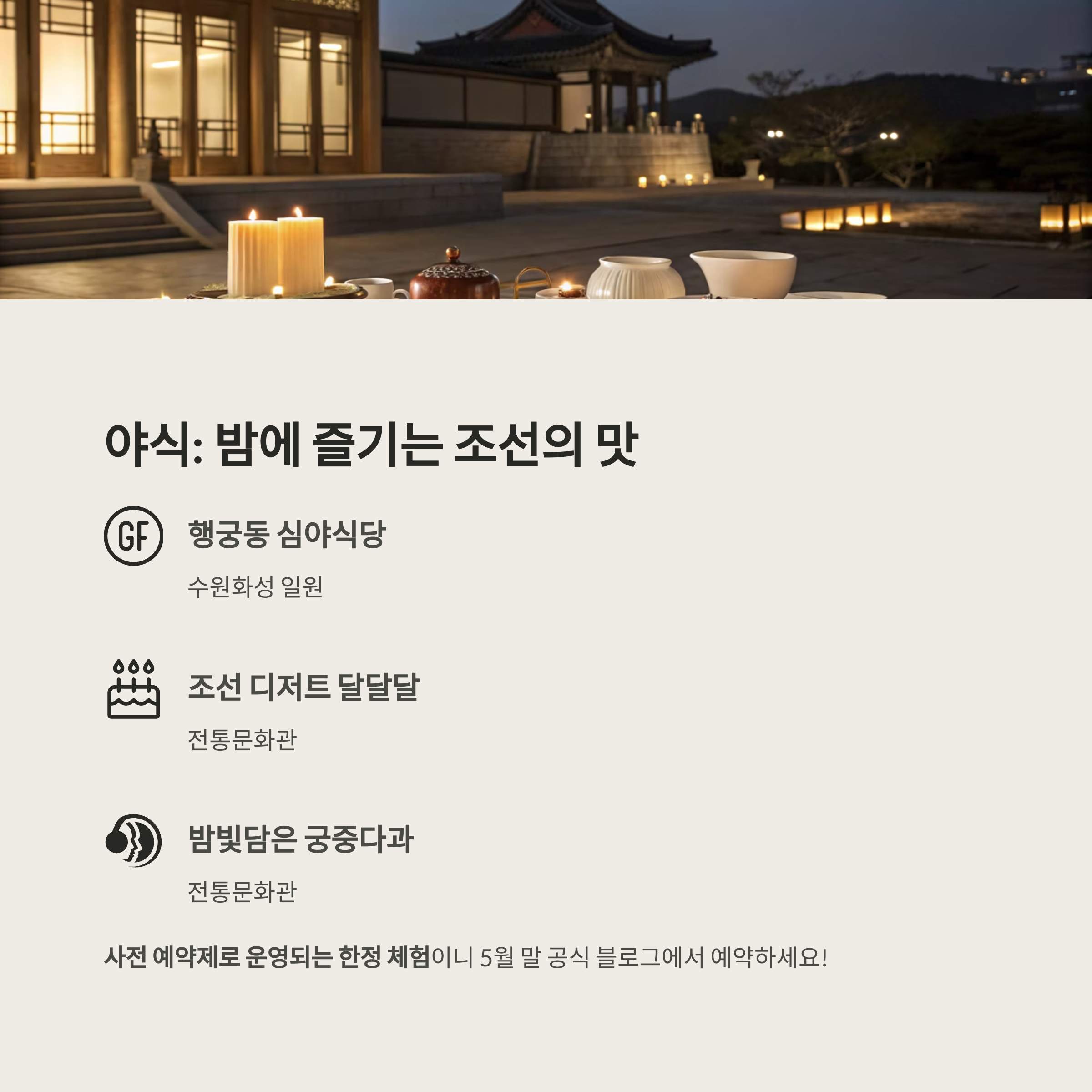 야식: 조선 디저트와 궁중다과, 감성 가득한 미식 체험