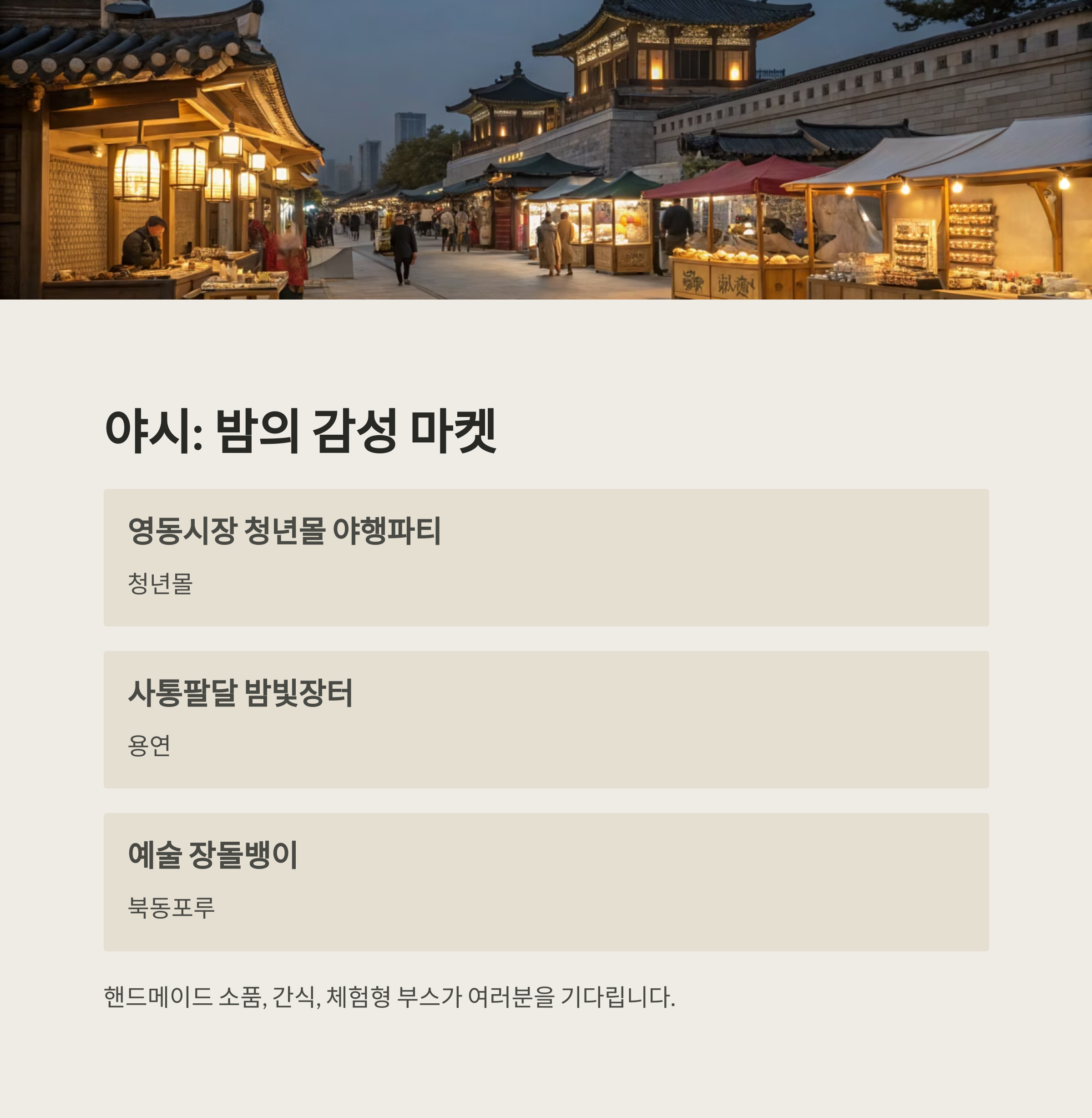 야시: 야시장과 예술마켓, 밤의 또 다른 즐거움