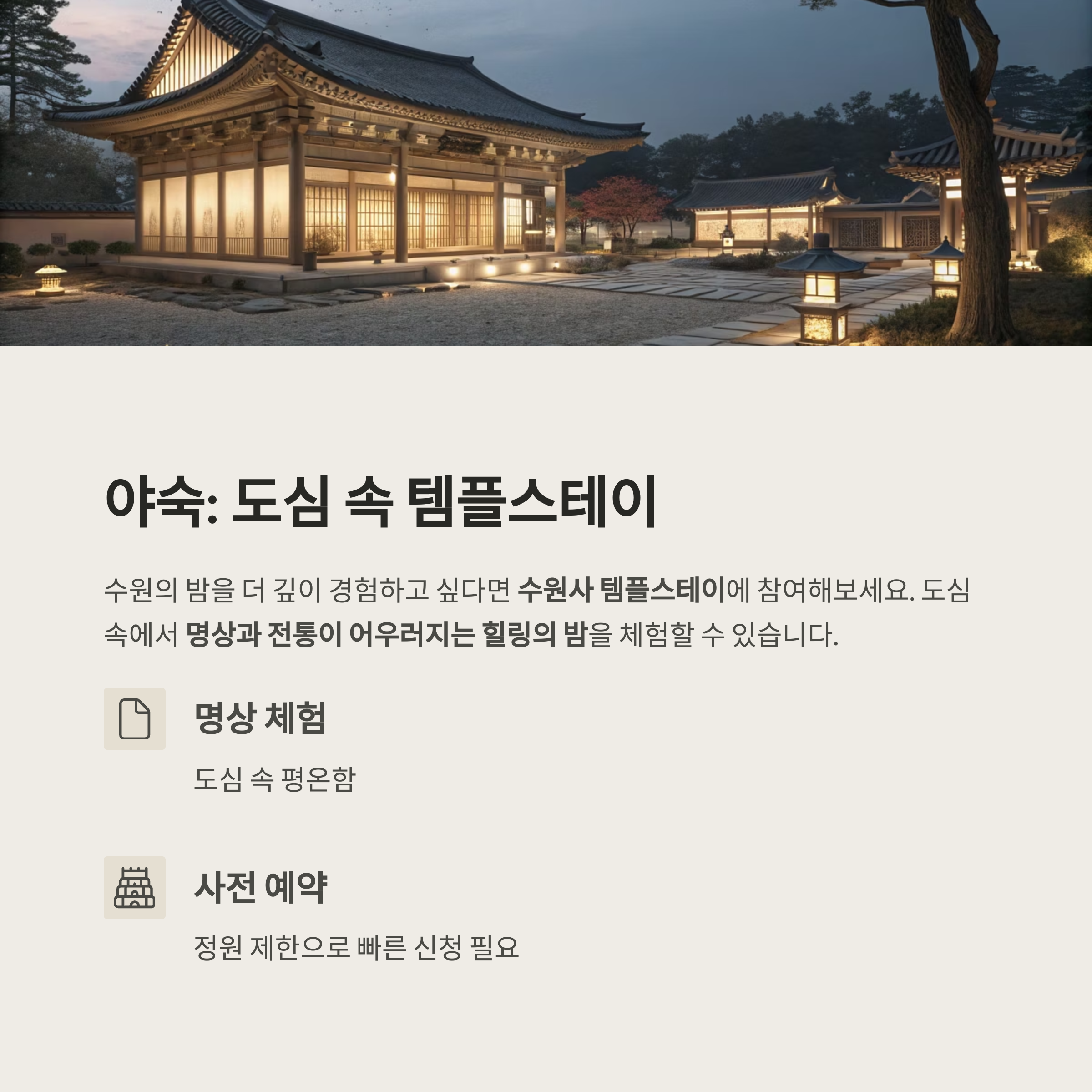 야숙: 도심 속 힐링, 템플스테이까지 가능한 수원의 밤