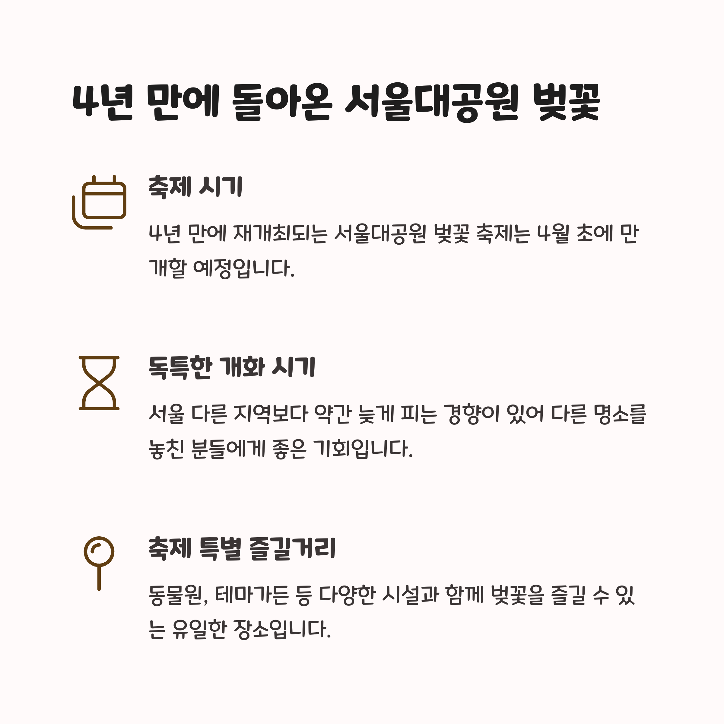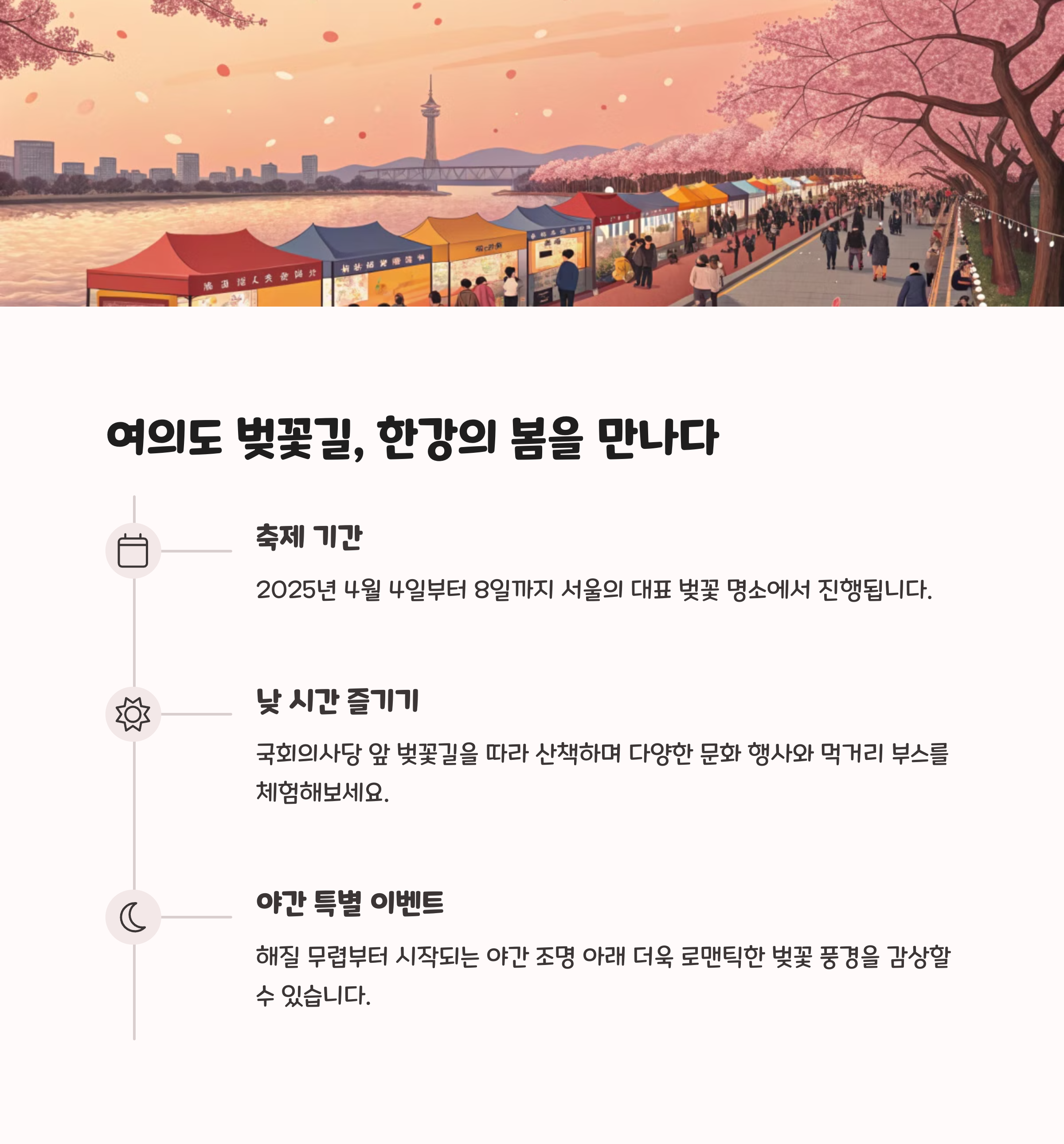 | Q. 서울 주요 벚꽃 축제는 어떤 차이가 있나요? |