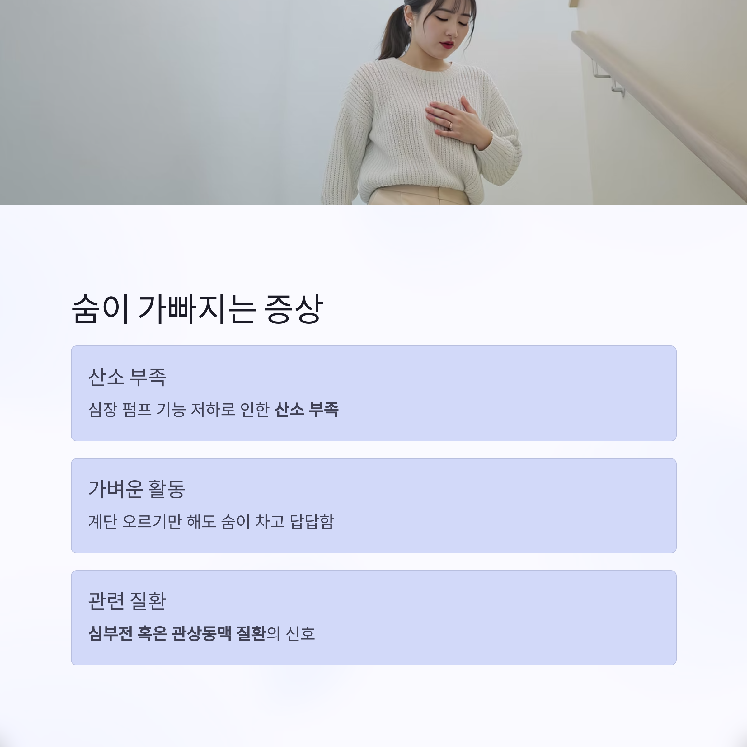 계단을 오르거나 가벼운 활동만 해도 숨이 차고 가슴이 답답한 증상이 있다면