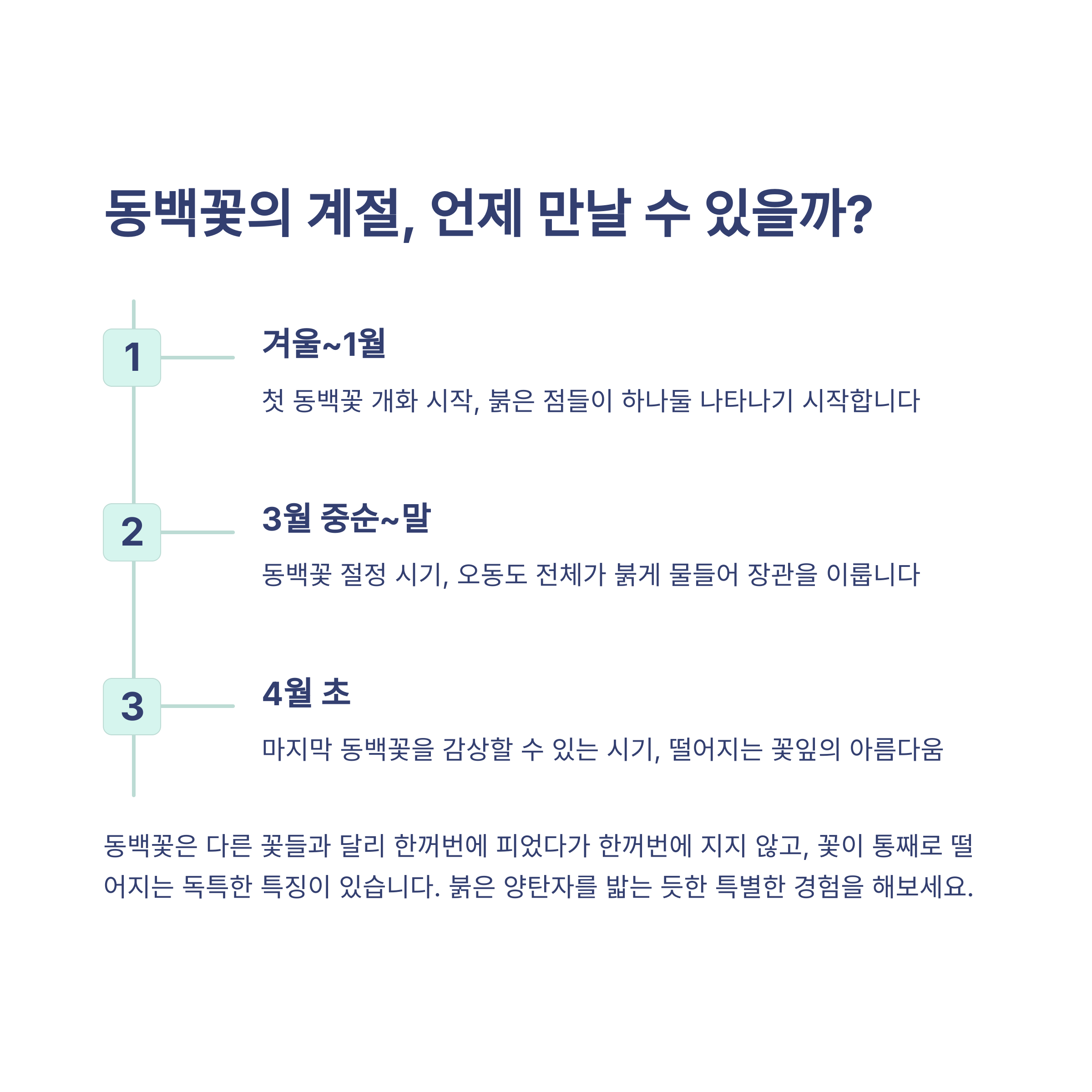 | 동백꽃 절정 시기 | 3월 중순~말 |