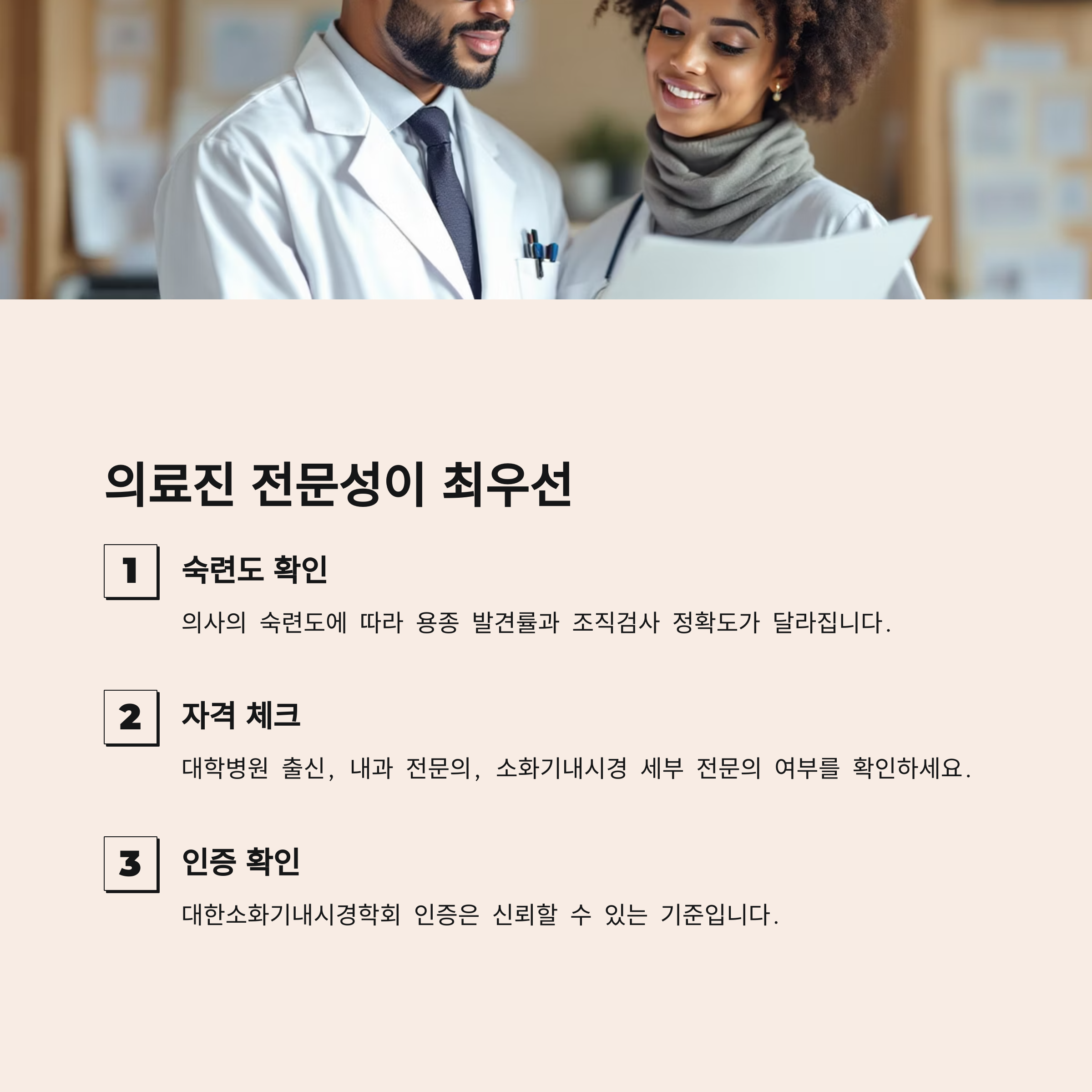 특히 "대한소화기내시경학회 인증" 여부는 의료진의 전문성을 확인할 수 있는