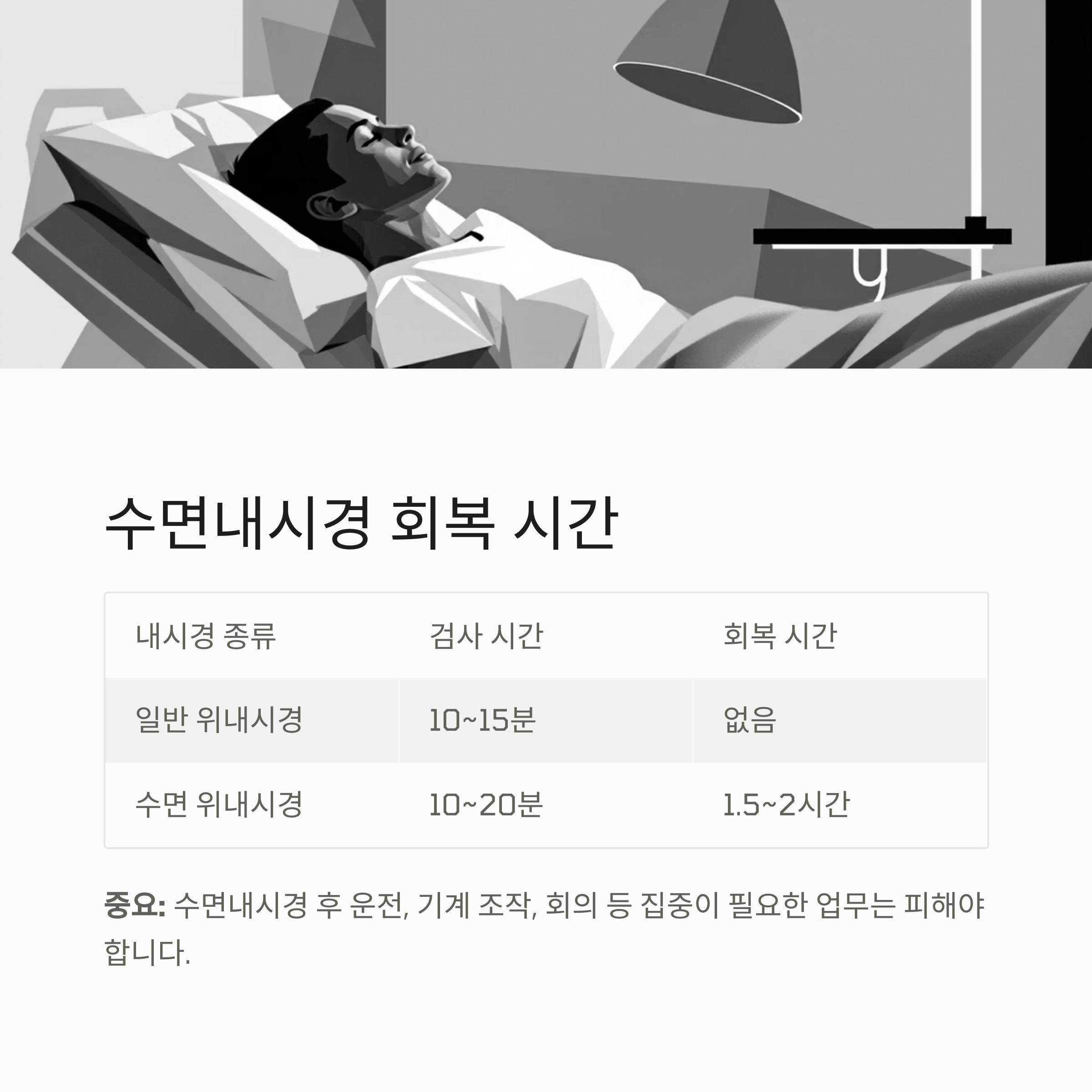 중요: 일부 병원은 수면내시경 후 보호자 동행이 필수이므로, 미리 확인해야 합니다.