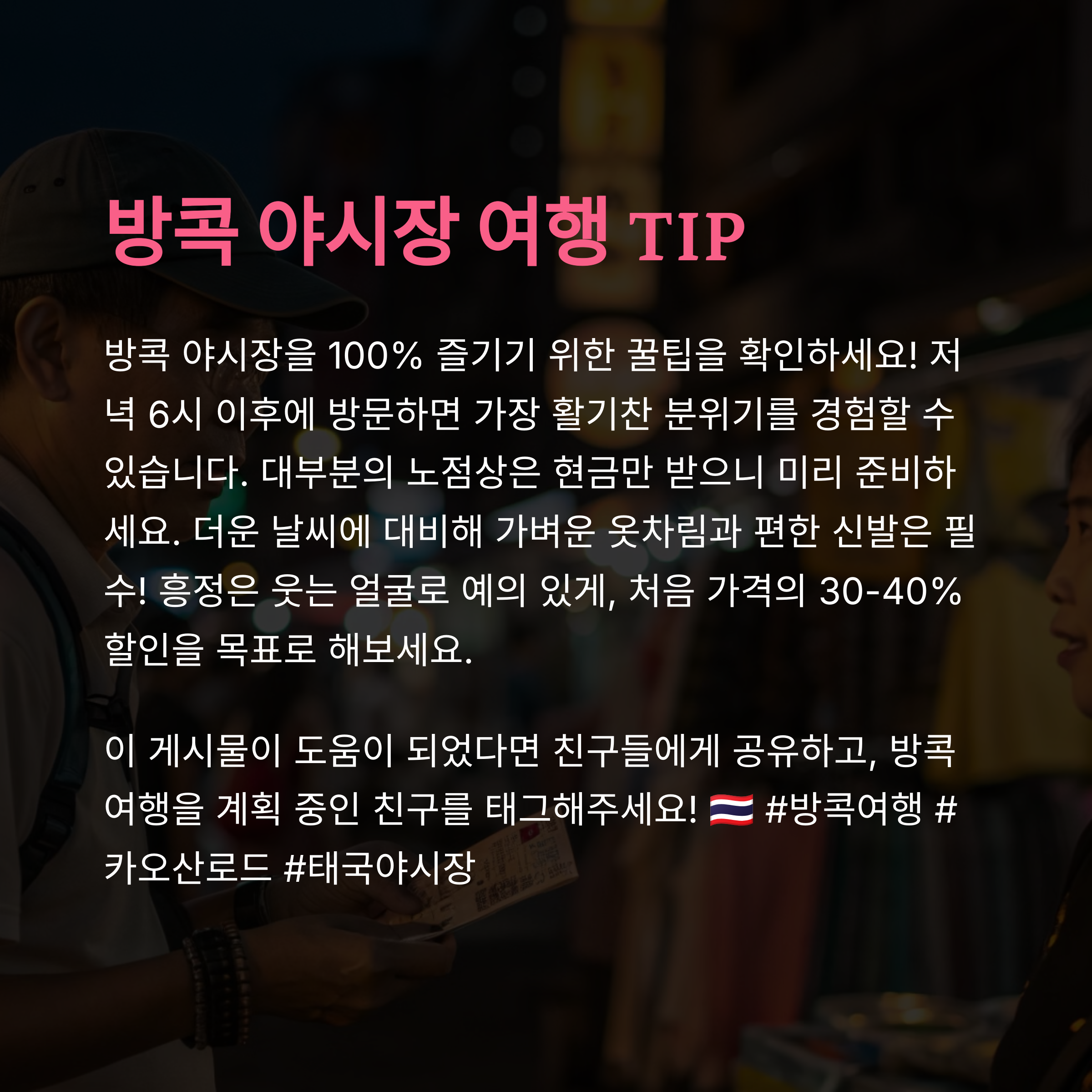 다음 방콕 여행에서는 카오산로드와 야시장을 꼭 방문해서 만끽해 보세요!
