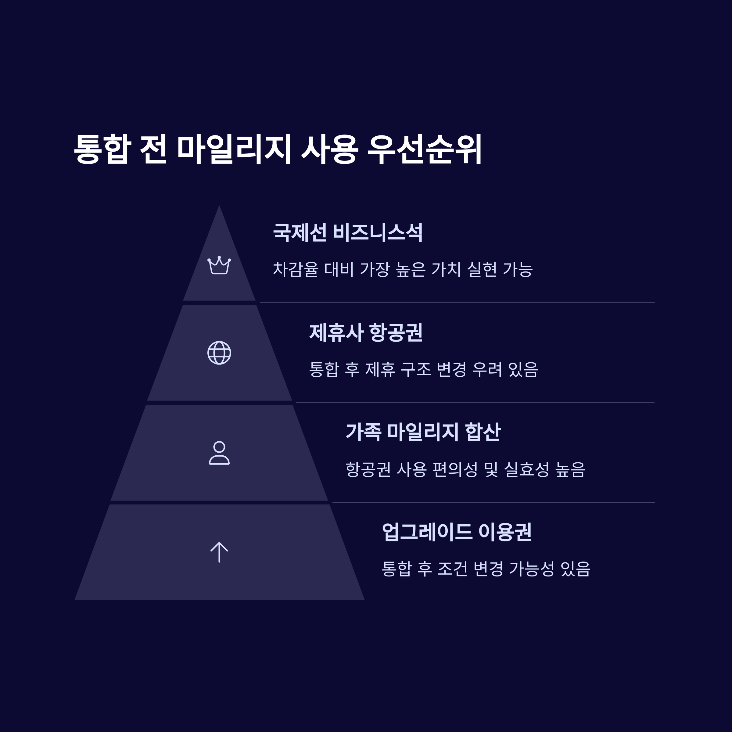 가장 안전한 방법은 통합 전 우선 사용입니다. 특히 국제선 비즈니스 클래스 좌석 확보, 제휴사 항공권 발권 등에 우선 사용하는 것이 유리합니다.