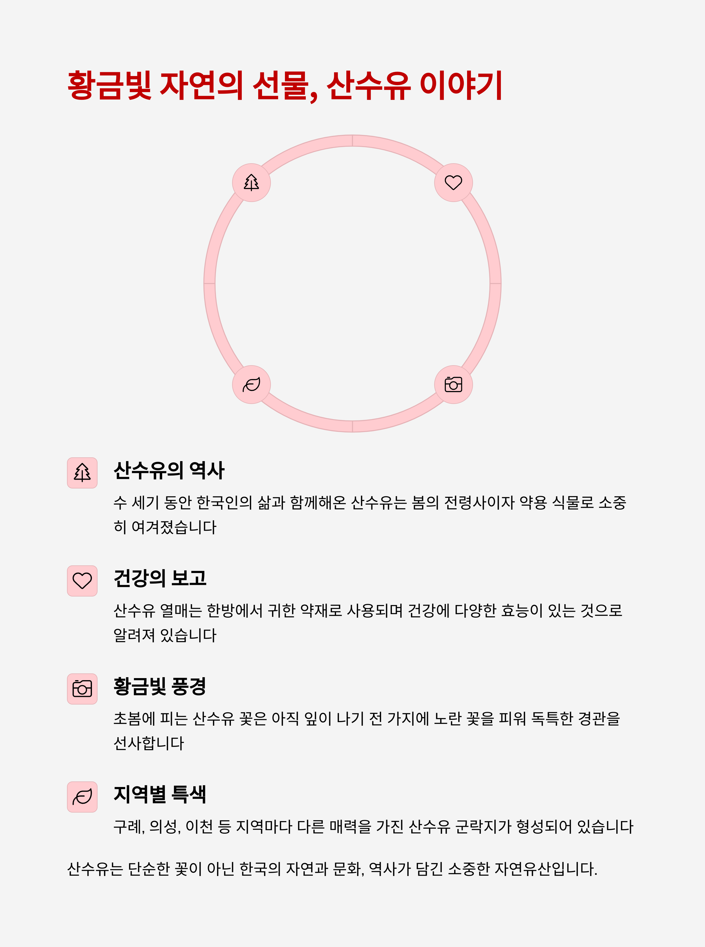 산수유꽃의 상징성을 활용한 다양한 콘텐츠 개발은 문화적 가치를 강화하는 데 기여하고 있습니다.