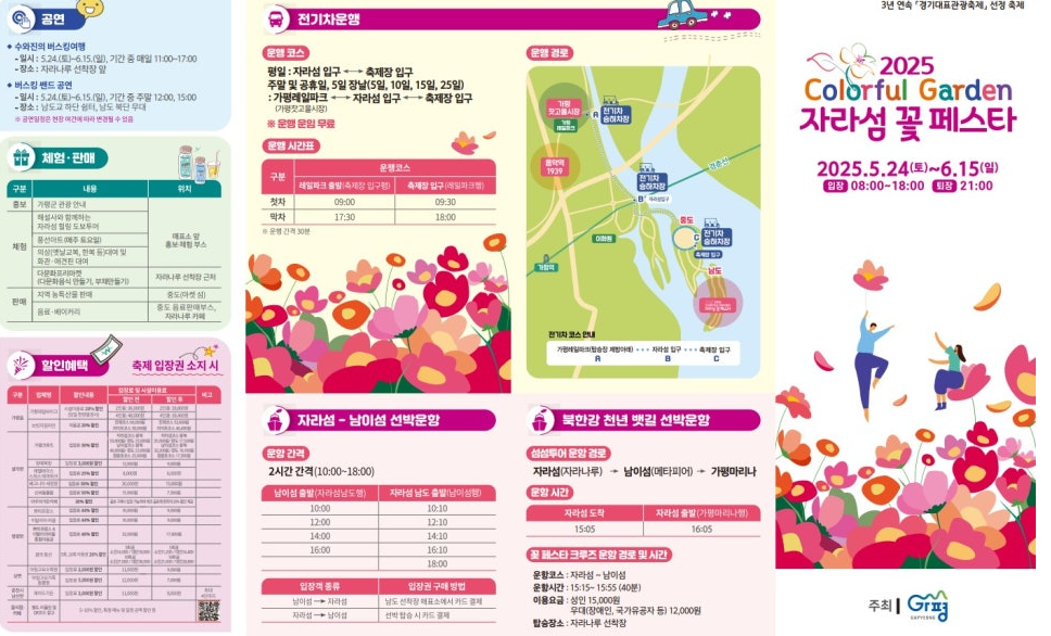 - 입장권 소지 할인은 가평 관광지, 숙박, 음식점 등에서 활용 가능하니 챙기세요.