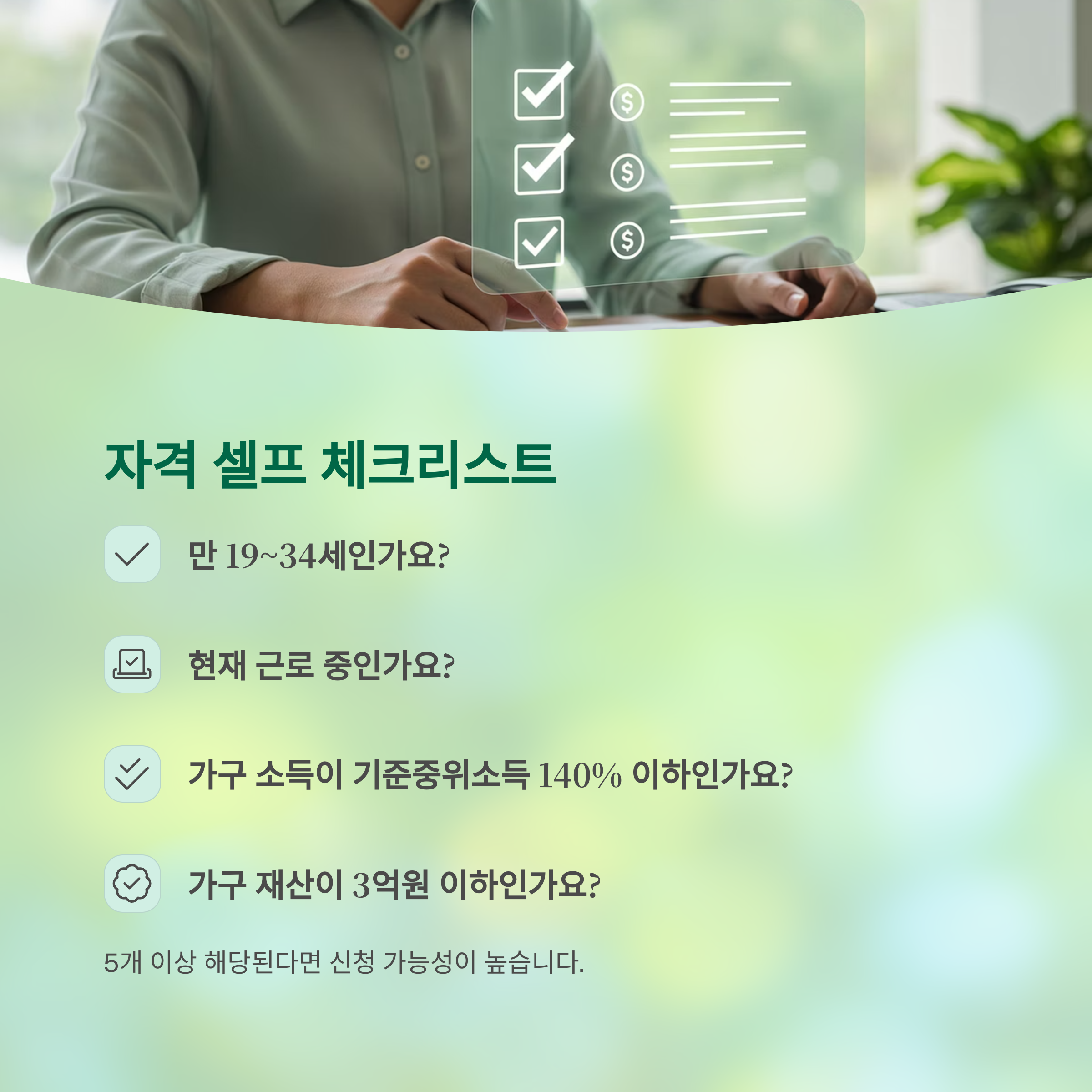 **"근로 중이며 소득과 재산 조건을 만족하는 청년이라면 대부분 신청 가능"**합니다.