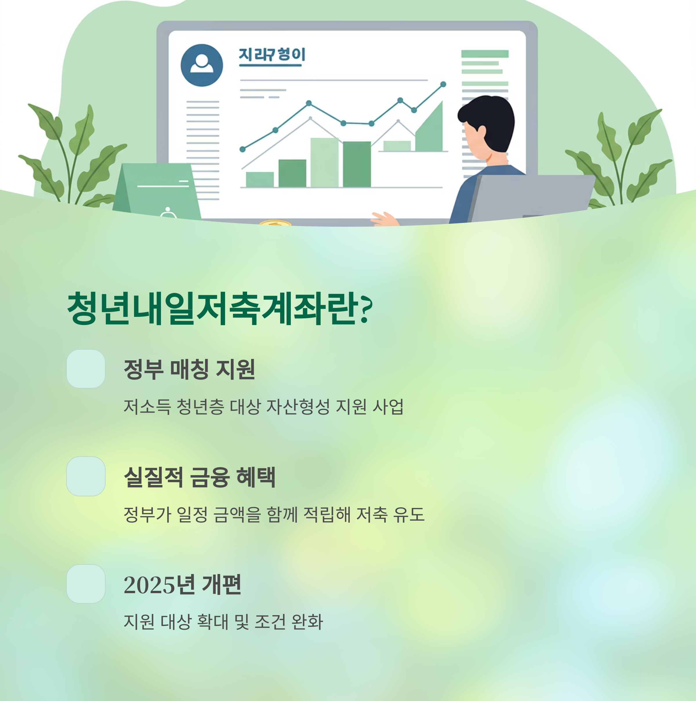 2025년 개편된 청년내일저축계좌는 근로 청년의 자산 형성을 위한 대표적인 정부 지원 사업입니다.
