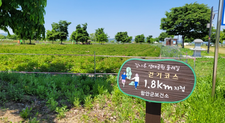 경남의 강나루생태공원은 봄이면 청보리밭과 작약꽃이 조화를 이룹니다.