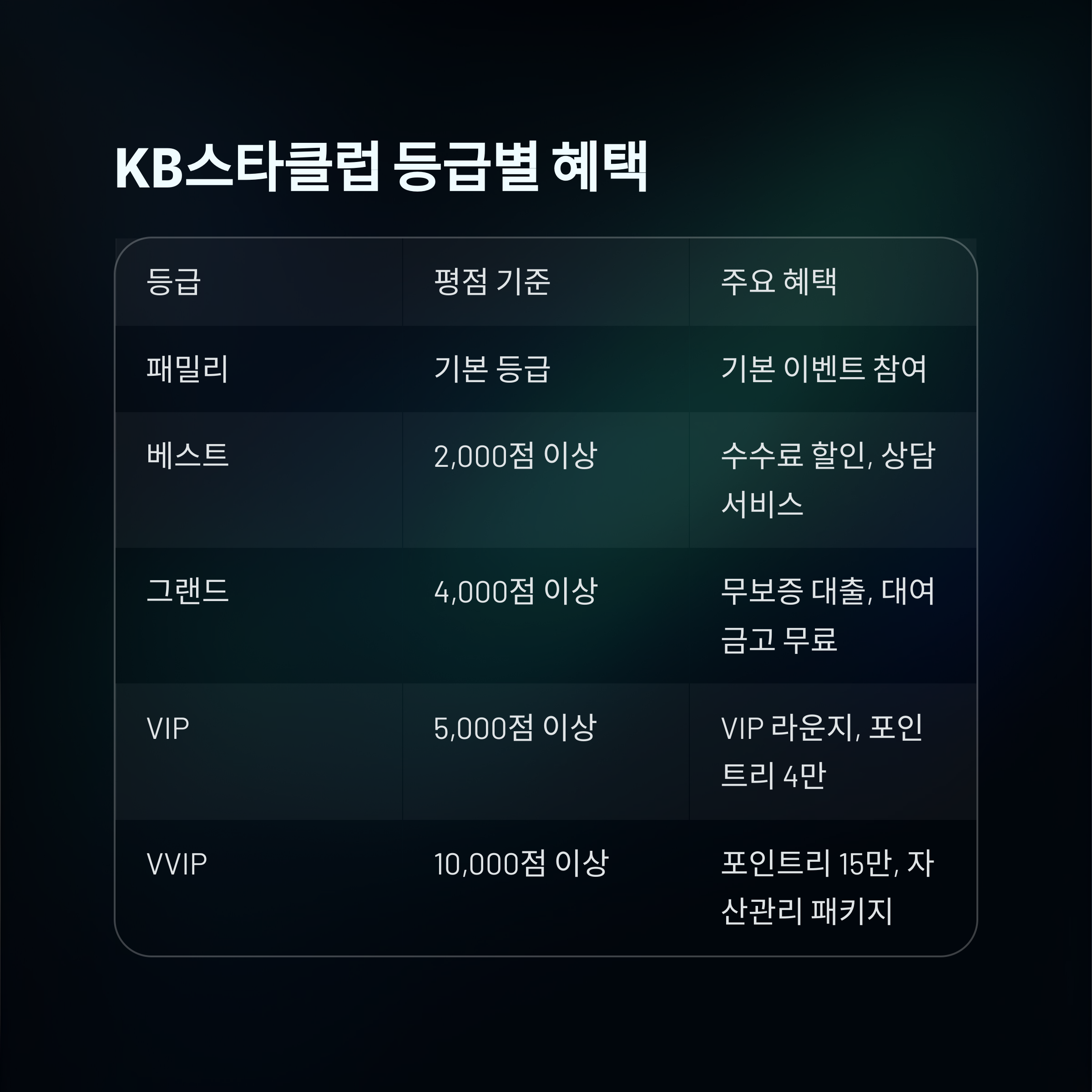 | VVIP | 10,000점 이상 | 포인트리 15만, 대출·자산관리 풀패키지 제공 |