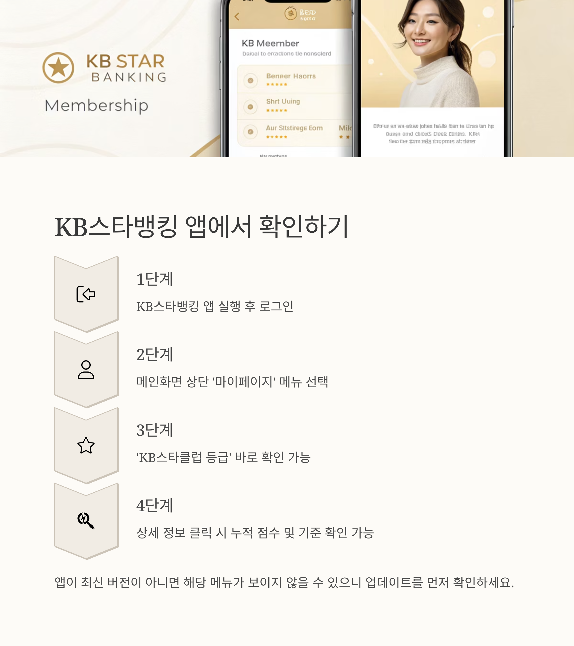 | 3단계 | ‘KB스타클럽’ 배너 혹은 등급 조회 메뉴 확인 |