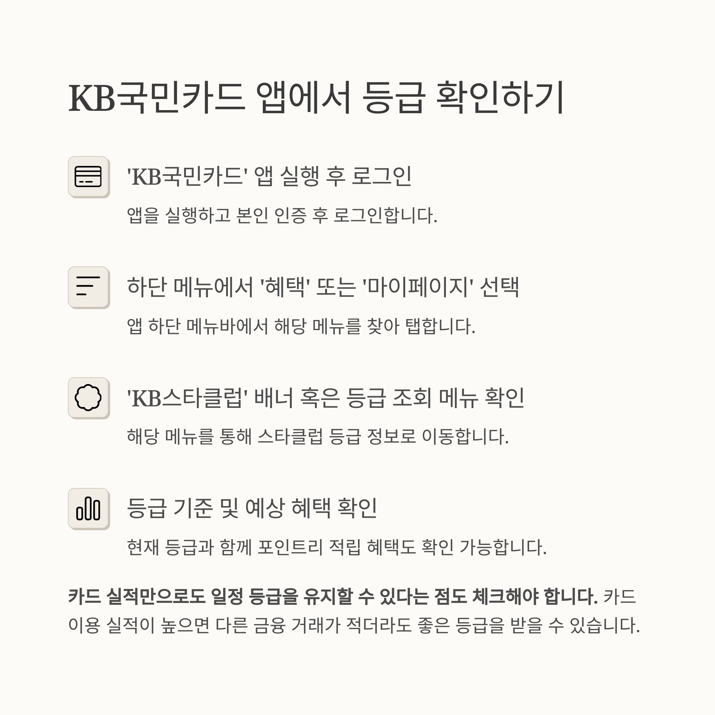 KB국민카드 앱에서도 별도로 등급을 조회할 수 있는데